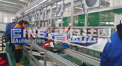 該線體總長28m,采用倍速鏈輸送模式 ,更好的控制生產(chǎn)節(jié)拍,每個工位設(shè)有擱物板、工具櫥和呼料警報燈,使作業(yè)更方便。